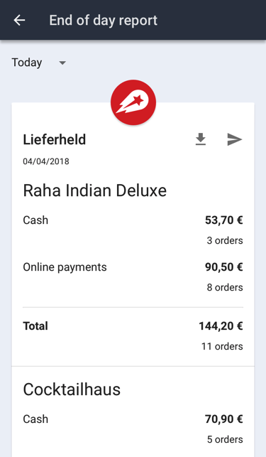 A day and week summary of the restaurant performance.